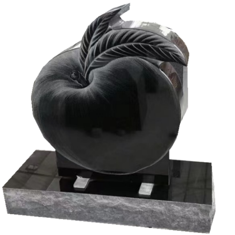 Shanxi black granite headstone with apple etching .