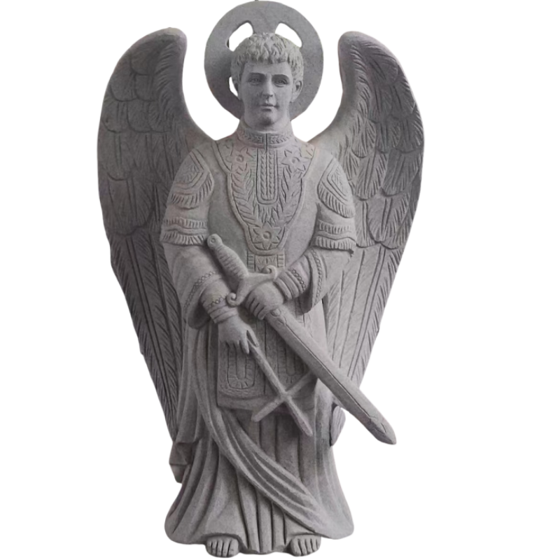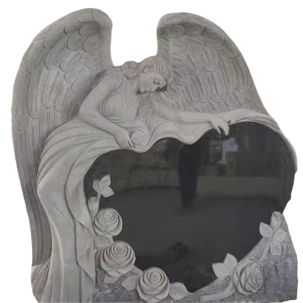 Shanxi Black angel headstone with flower carving .